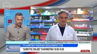 Ο Πρόεδρος του Φαρμακευτικού Συλλόγου Θεσσαλονίκης, Διονύσιος Ευγενίδης μιλάει στην εκπομπή "Δημότης on line" για την έξαρση κρουσμάτων κορωνοϊού, γρίπης και ιώσεων που έχει οδηγήσει σε αυξημένη προσέλευση ασθενών στα φαρμακεία.