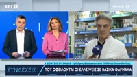Ο Πρόεδρος του Φαρμακευτικού Συλλόγου Θεσσαλονίκης, Διονύσιος Ευγενίδης μιλάει στην πρωινή εκπομπή "Συνδέσεις" της ΕΡΤ1 για τις ελλείψεις φαρμάκων.