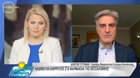 Ο Πρόεδρος του Φαρμακευτικού Συλλόγου Θεσσαλονίκης, Διονύσιος Ευγενίδης μιλάει στην πρωινή εκπομπή "Πρώτη καλημέρα" της TV100 για την αύξηση διαρρήξεων και ληστειών στα φαρμακεία της πόλης.