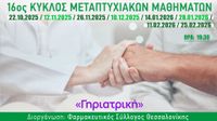 Τον 16ο κύκλο των μεταπτυχιακών μαθημάτων, που απευθύνεται στα μέλη του και είναι δια ζώσης, διοργανώνει ο Φαρμακευτικός Σύλλογος Θεσσαλονίκης (ΦΣΘ), στο πλαίσιο της δια βίου εκπαίδευσης των φαρμακοποιών. Κεντρικό θέμα του 16ου κύκλου είναι «Γηριατρική» και έχουν προγραμματιστεί οκτώ μαθήματα: 22/10/2025, 12/11/2025, 26/11/2025, 10/12/2025, 14/01/2026, 28/01/2026, 11/02/2026 και 25/02/2026 Ώρα έναρξης...